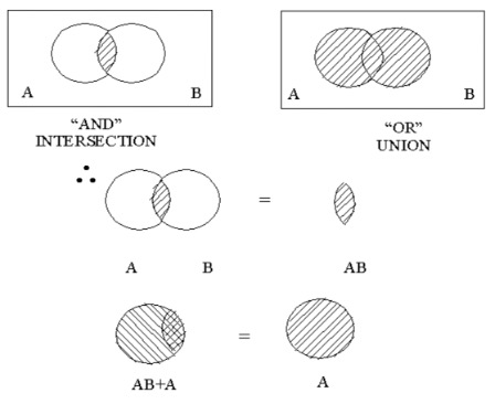 This diagram illustrates the adsorption laws of Boolean algebra.