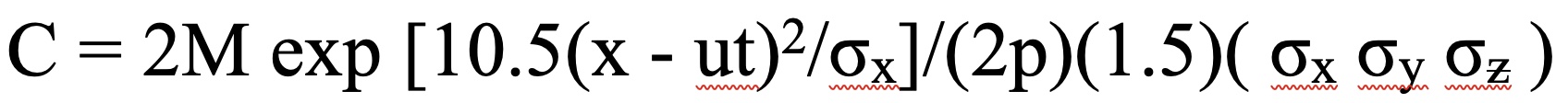 Inserting this information in the equation for chemical plume dispersion and recognizing that the maximum value for C at any point occurs when x = ut. Using Ct = 2.58x10-8 lb moles/ft3: